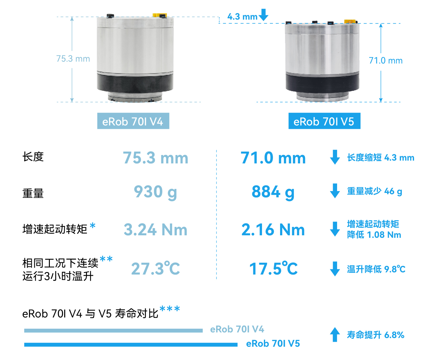 由于末端三个eRob70关节自重减少,致使第4轴负载降低,从而提升了该轴寿命,参考计算如下: