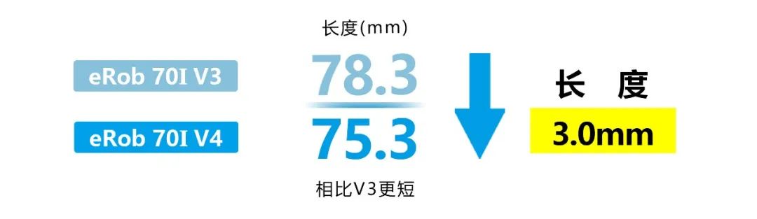 eRob 70I V4 长度缩短近4%,使内部结构更紧凑,体积更小。