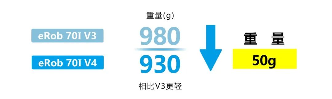 eRob 70I V4重量减轻5.1%,使机器人更轻量化,组装更灵活。